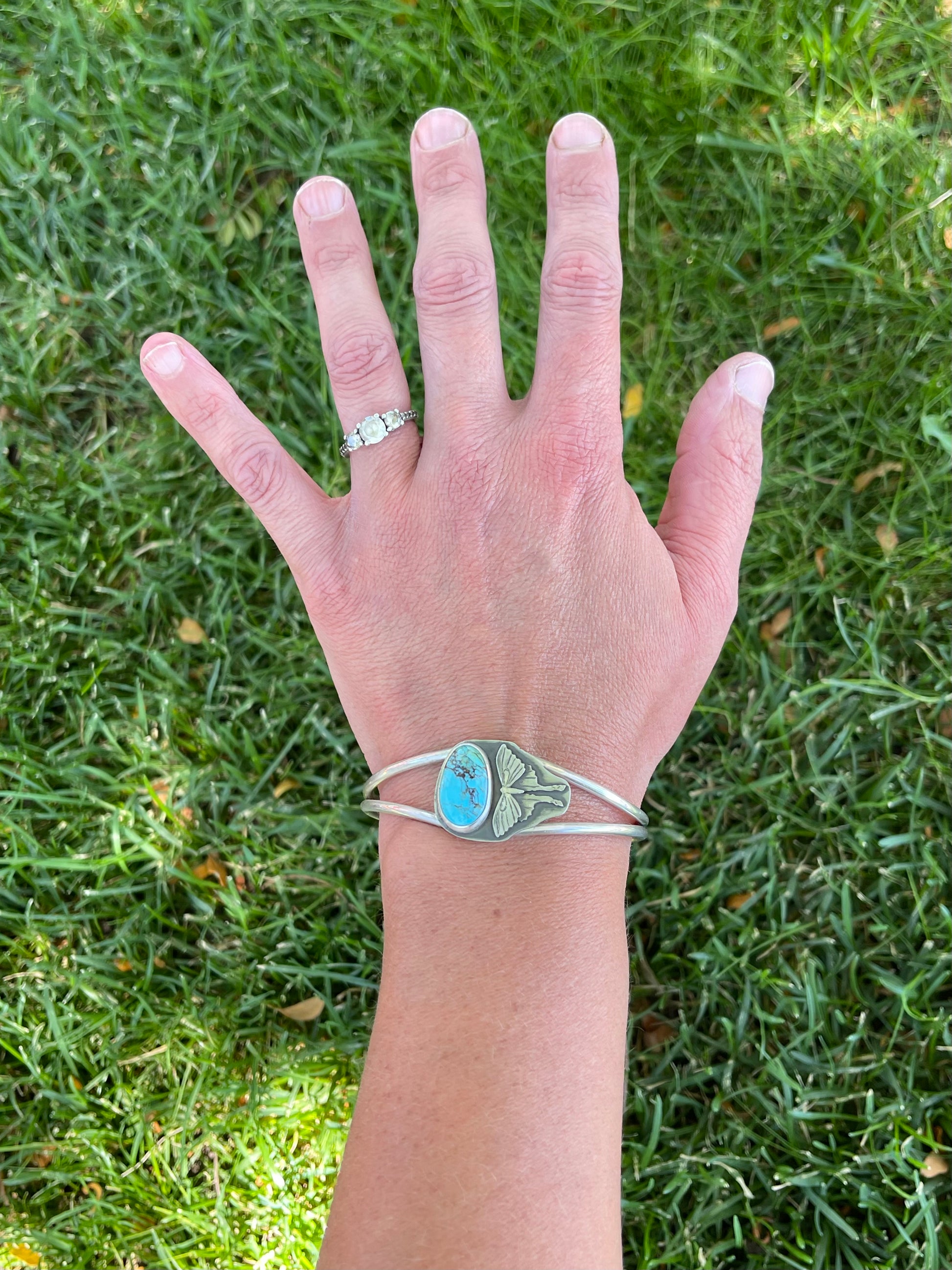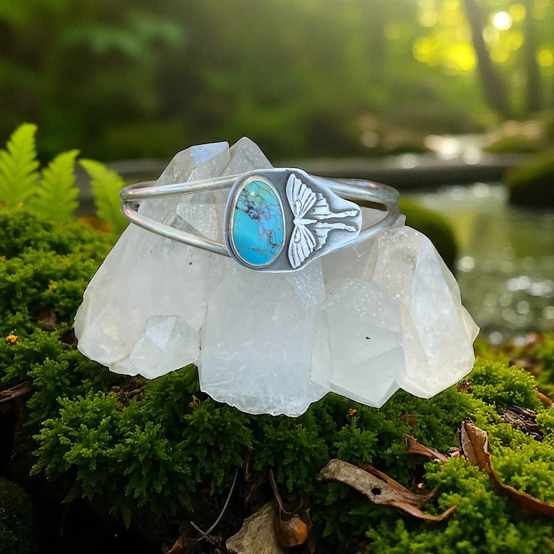 This stunning Turquoise looks so beautiful paired with this Luna Moth and is giving off serious nature vibes.