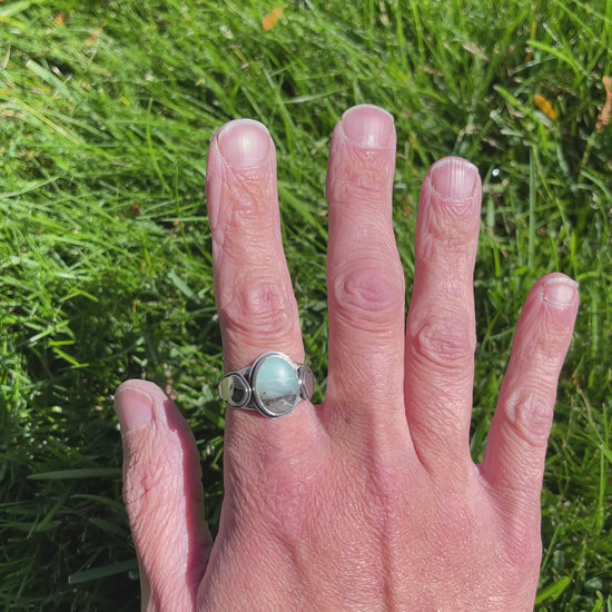 This gorgeous material is called BC Ocean Stone and is just incredible. This is set in sterling silver and is a size 8